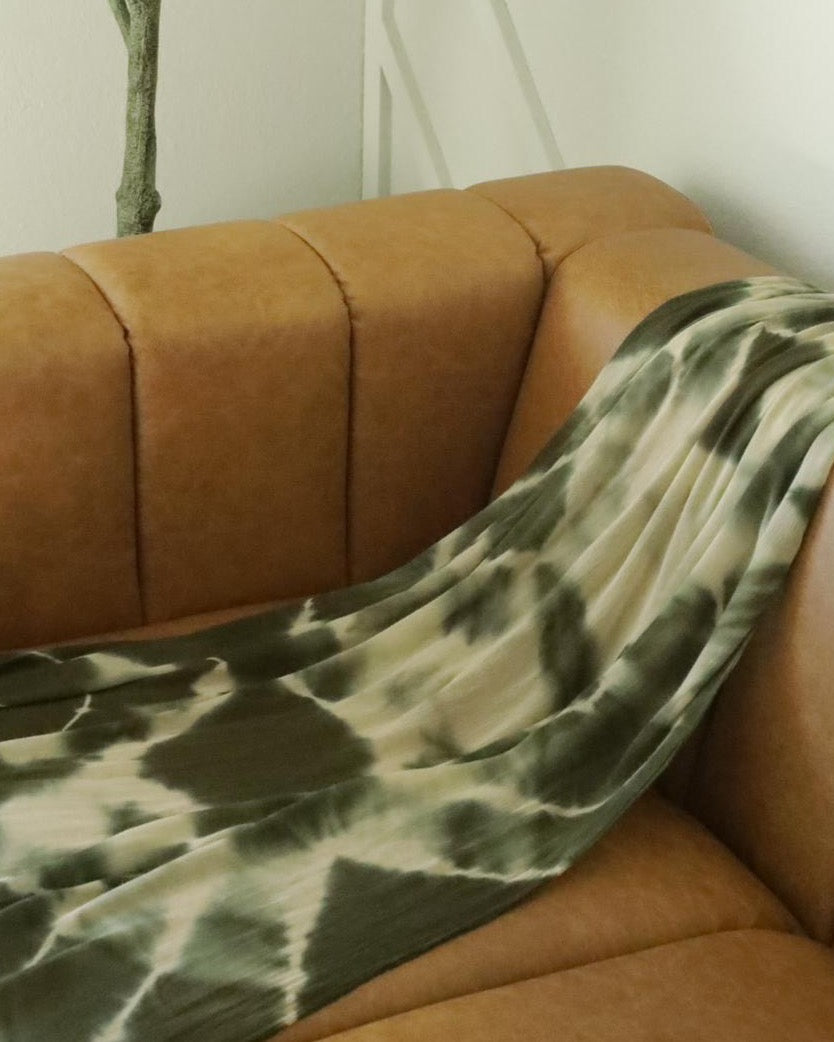From our initial collection, Garland is a hand-dyed blended modal with tree green & beige fall tones.