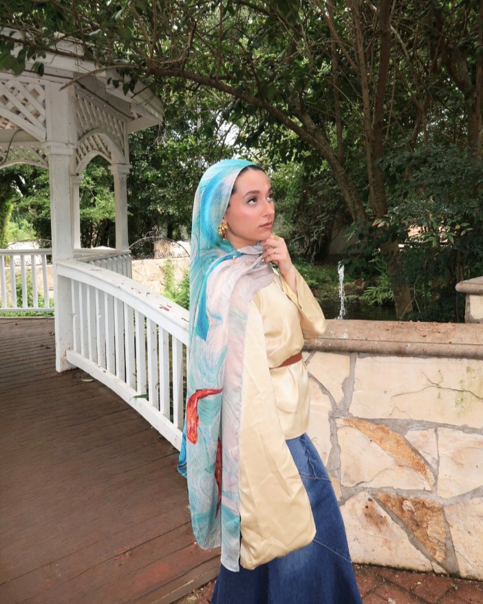 “And of everything We have created pairs, that you may remember.” [adh-Dhariyat 51:49] A blend of light blues and creams with 2 bright Koi fish, the Koi hijab holds a significance of our brand turning 2.